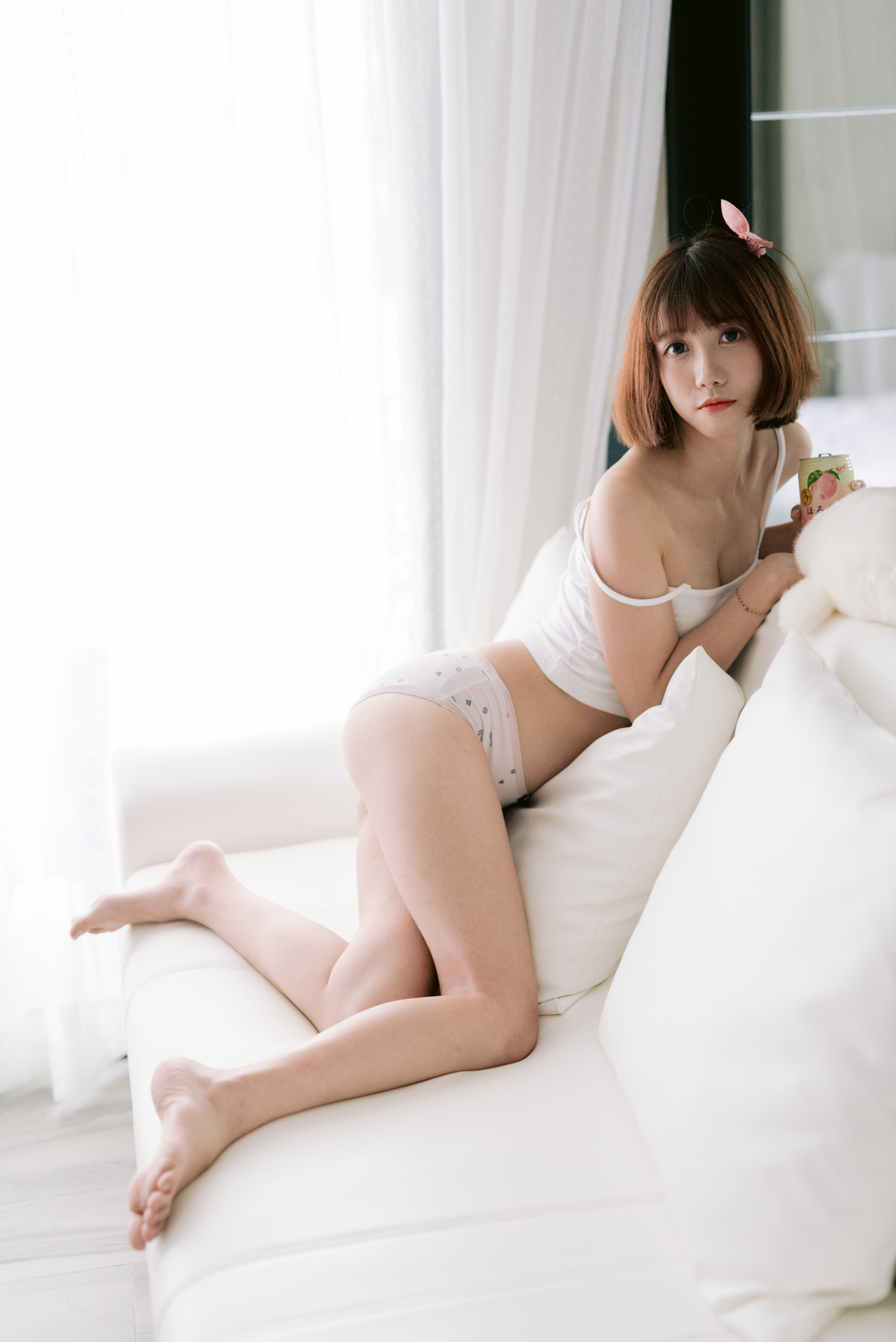 Do you love peach, pink or cute girlfriend with pure white lingerie?